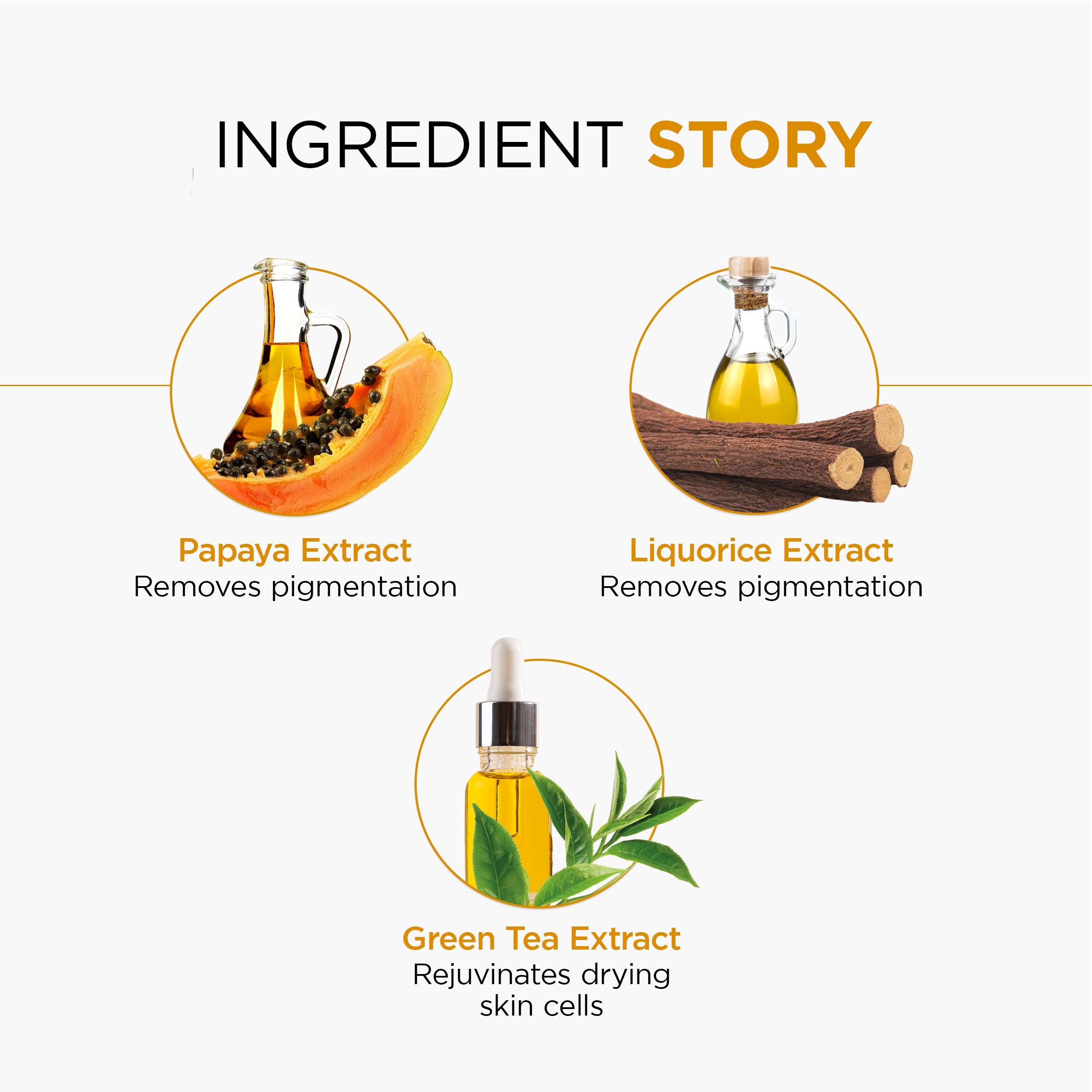Papaya Extract is a miracle ingredient that can clear out the scars and uneven pigmentation on the skin. The skin lightening properties of the fruit help in getting rid of blemishes and pigmentation. It also exfoliates dead skin cells. trac