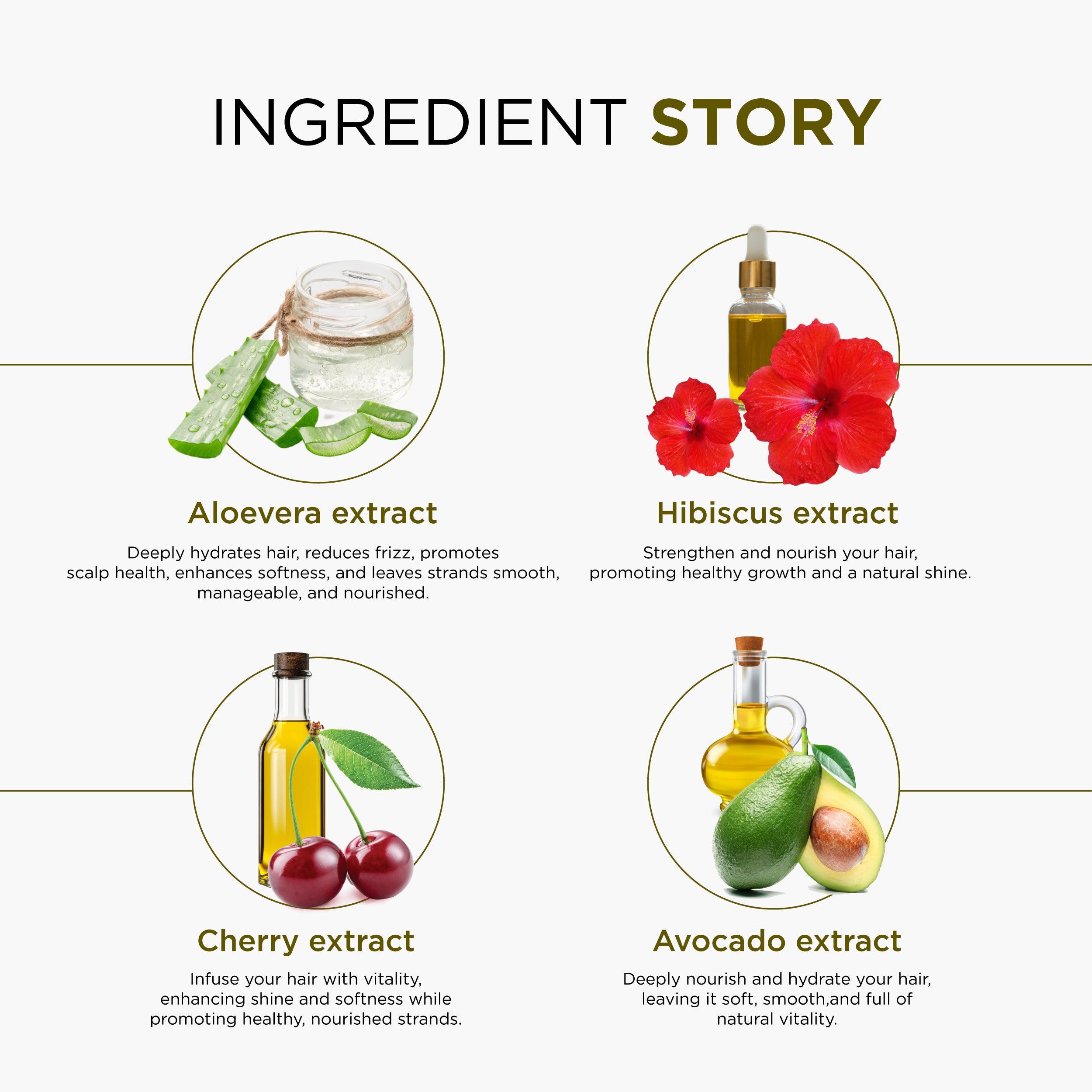 Cherry Extract are good for hair, since cherries has vitamins such as vitamin A, B, C, E, it helps in strengthening hair follicles and prevent breakage from the roots. It also nourishes the hair and prevents split ends and hair fall by stimulating the growth of new hair follicles