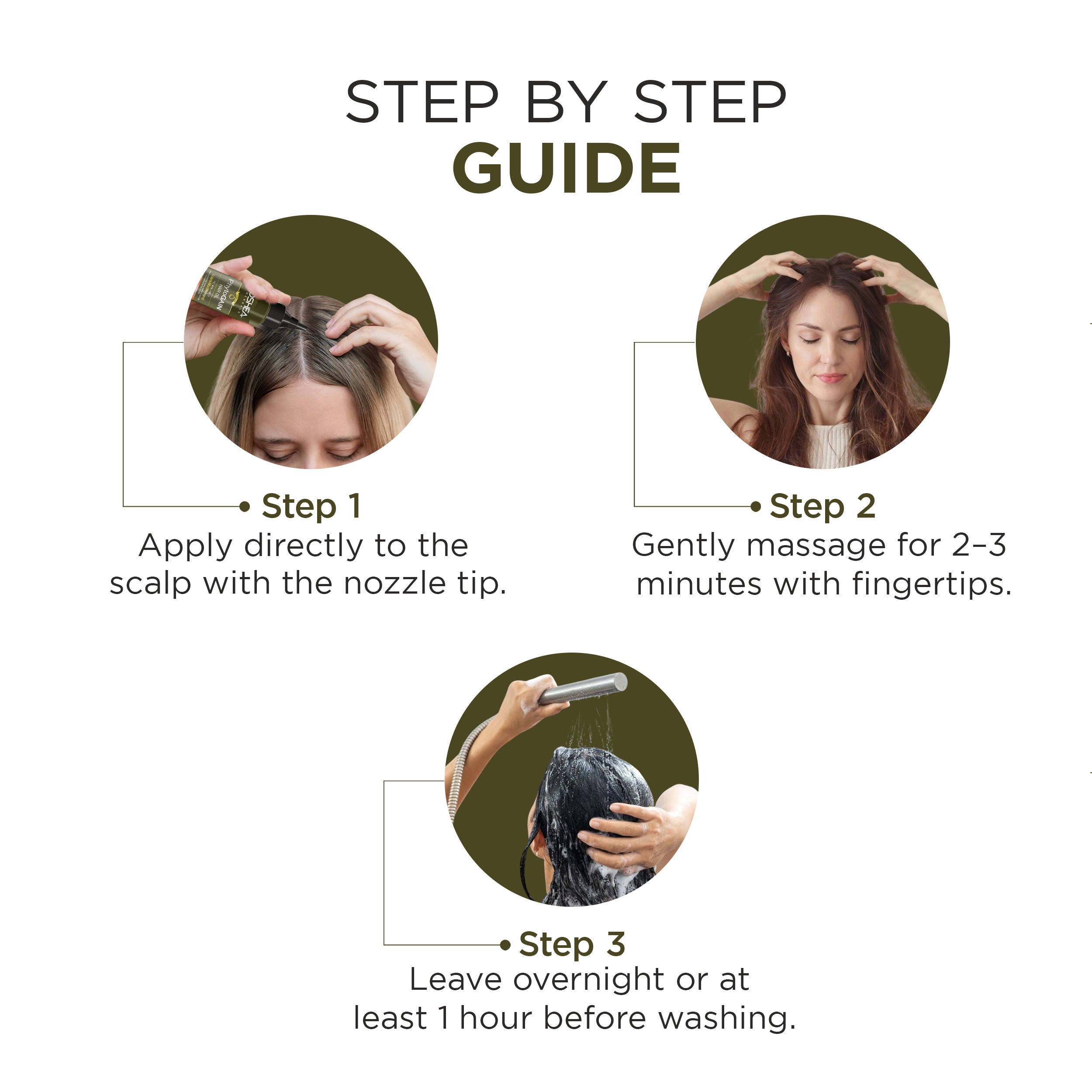 Gently massage into scalp thoroughly focusing on the roots, and the length of your hair.