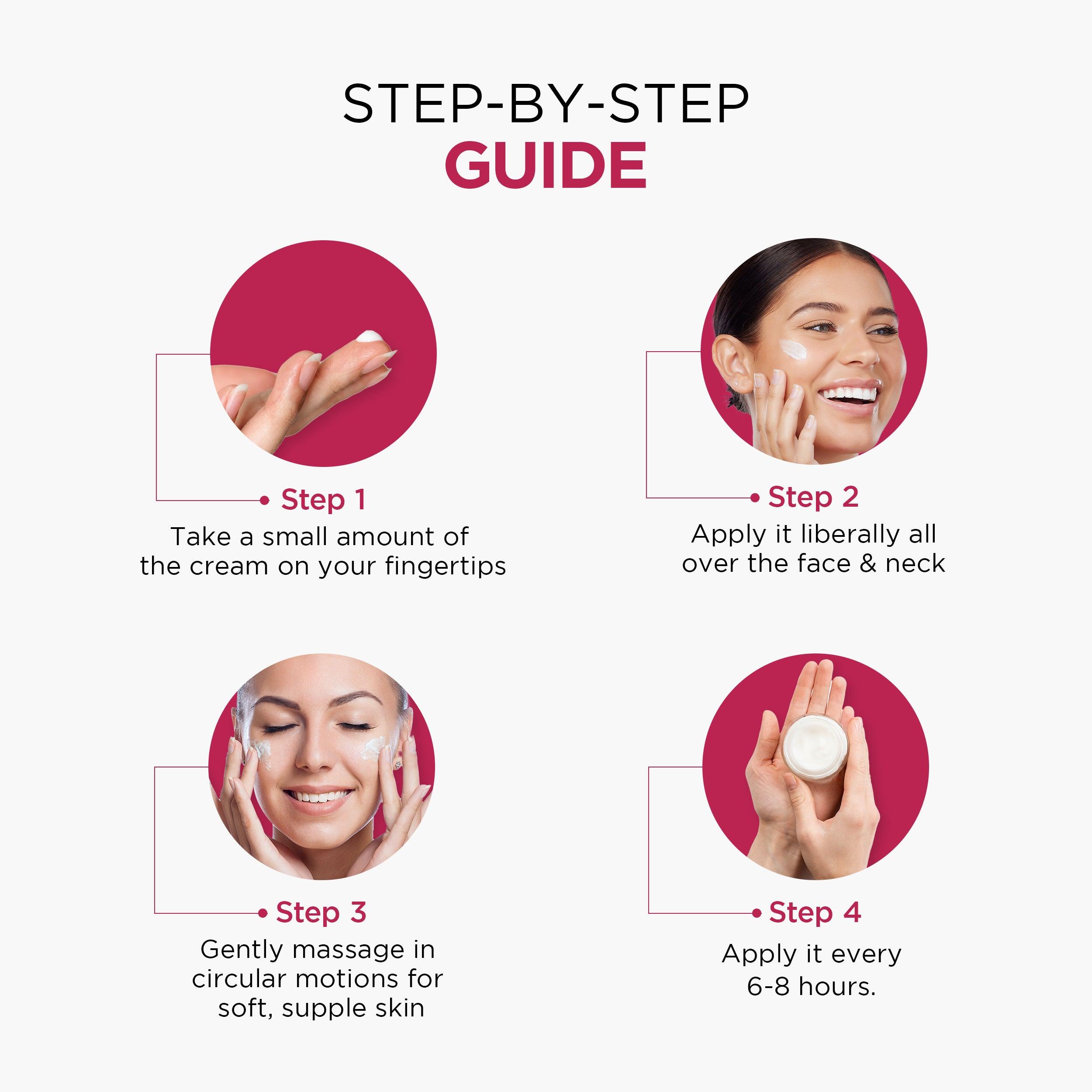 Liberally apply all over face and neck. Massage in circular motion to get soft and supple skin.