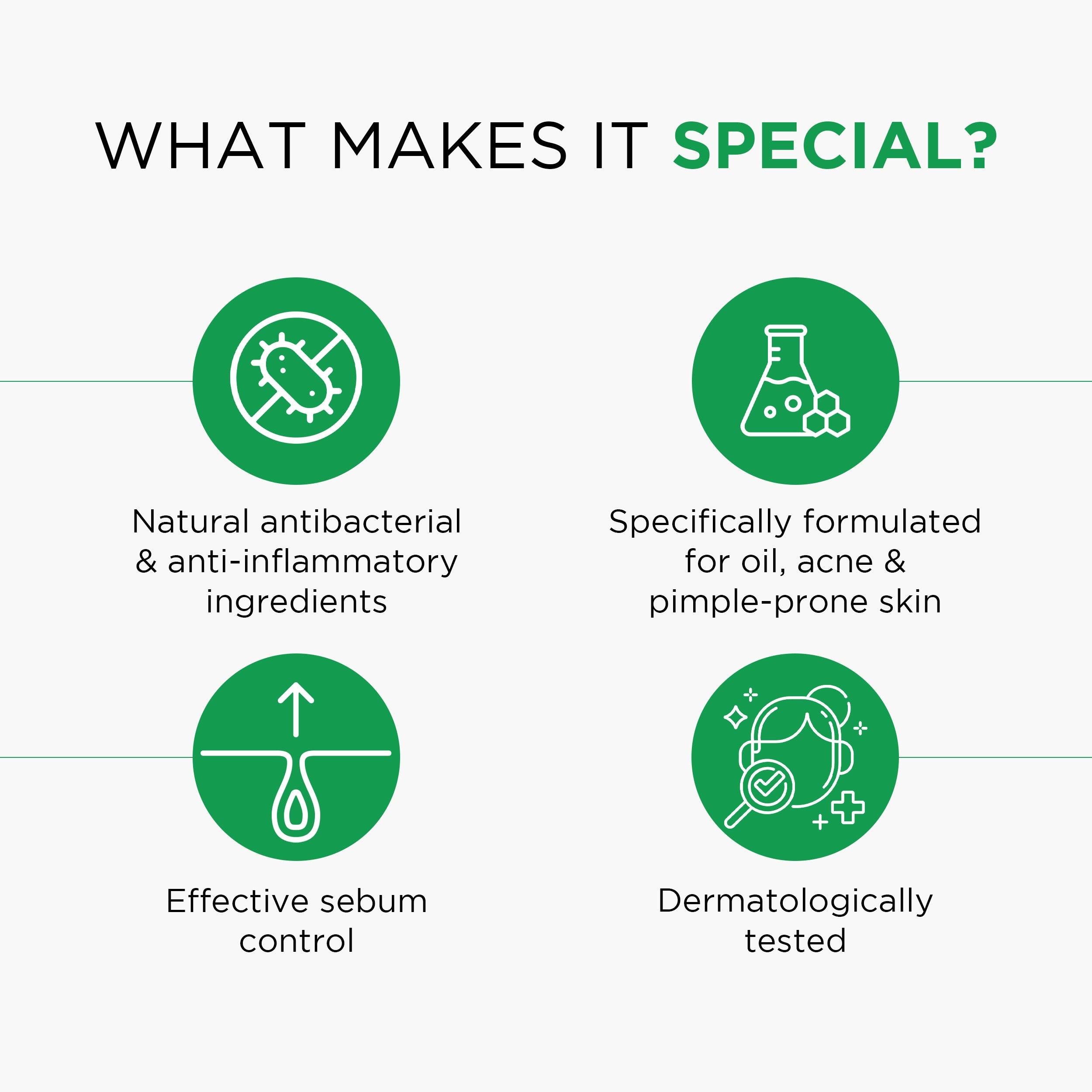 Neempure Anti Acne & Pimple Facewash, formulated with sebum control, tackles breakouts effectively. The natural power of neem purifies and soothes, promoting clear, acne-free skin. Embrace a refreshed skin with controlled sebum for lasting acne defense.