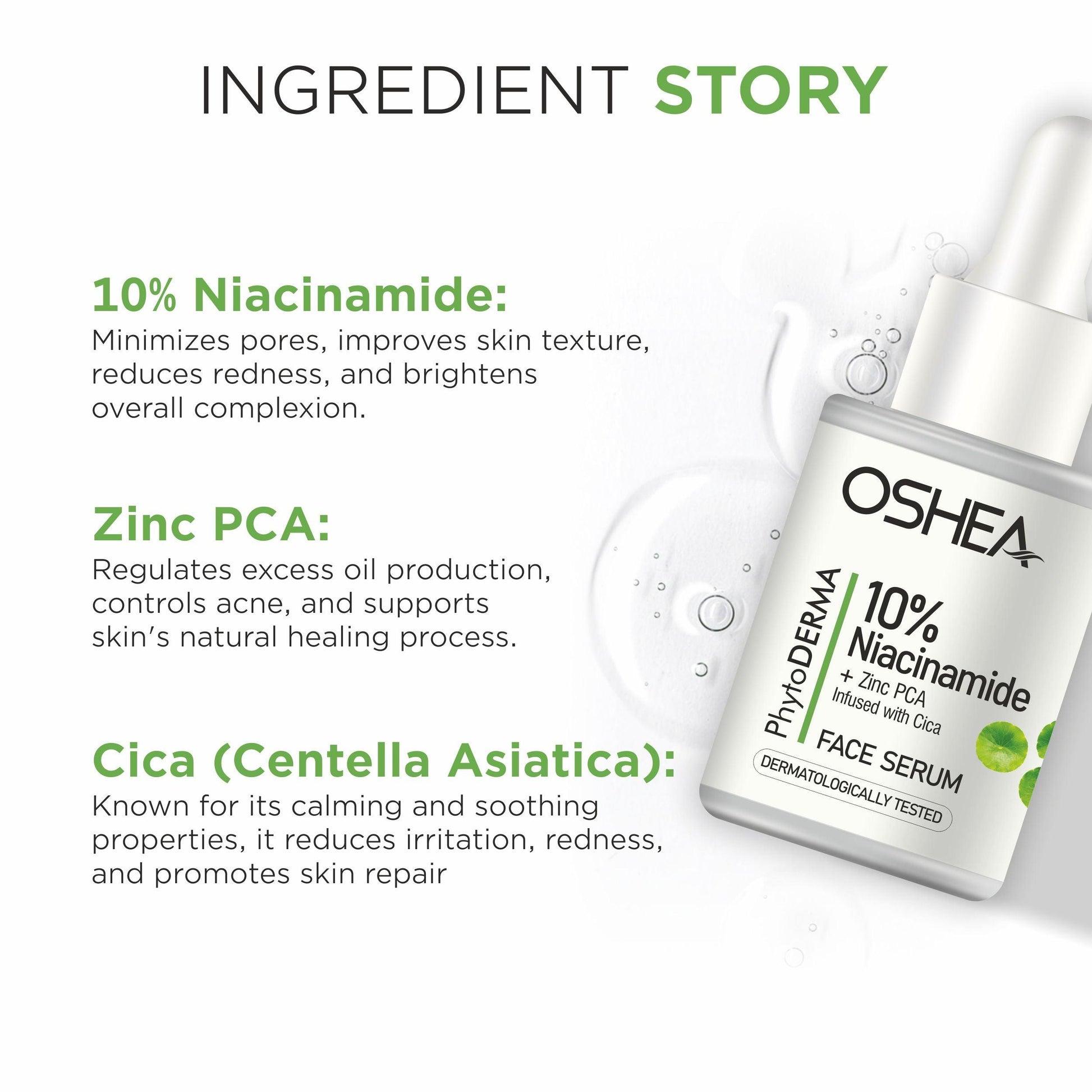 Infused with powerful ingredients such as Niacinamide, Zinc PCA, and Cica, Oshea PhytoDERMA Face Serum provides a refreshing and balancing skincare experience. Suitable for daily use to combat blemishes and improve skin texture.