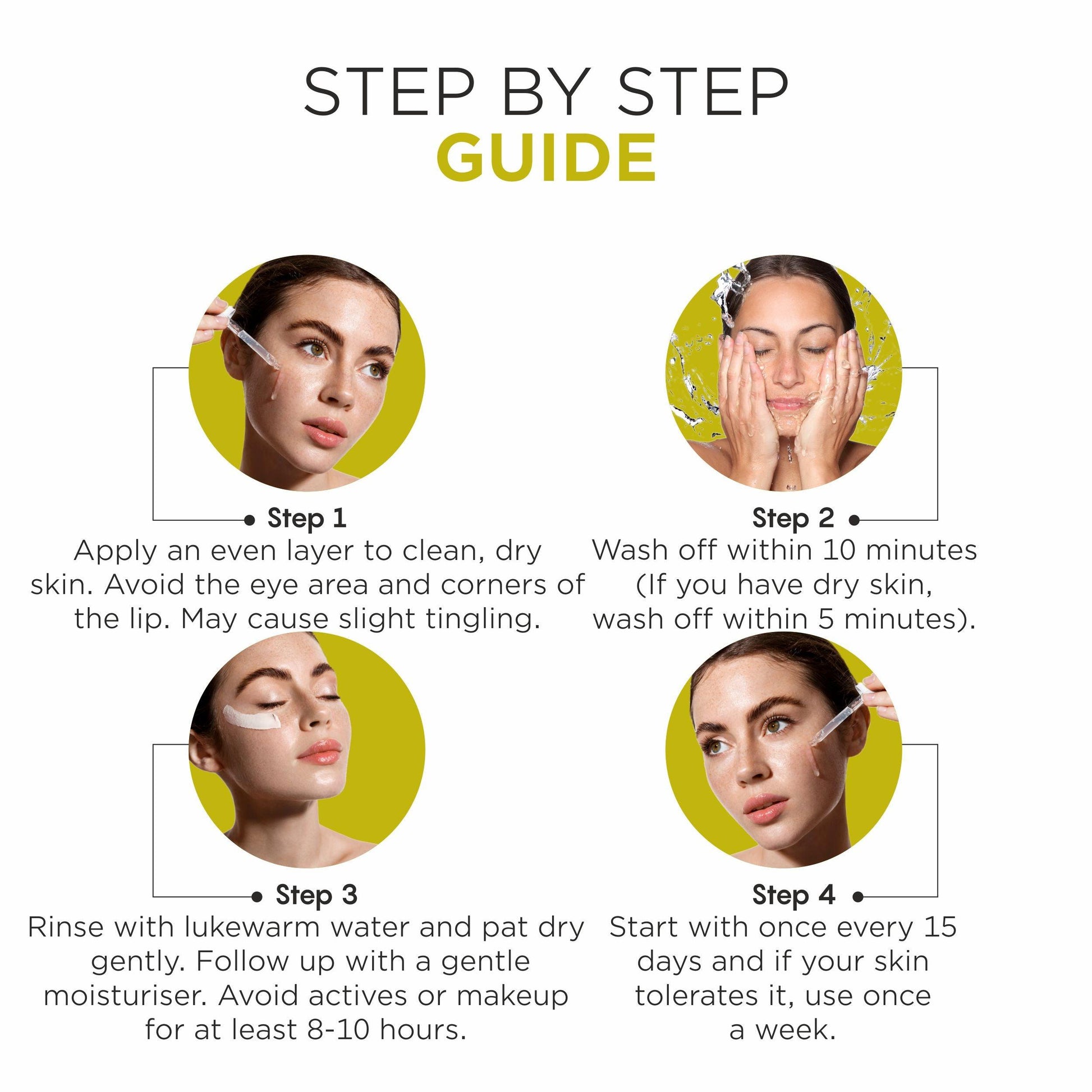 Rinse with lukewarm water and pat dry gently. Follow up with a gentle moisturiser. Avoid actives or makeup for at least 8-10 hours.
