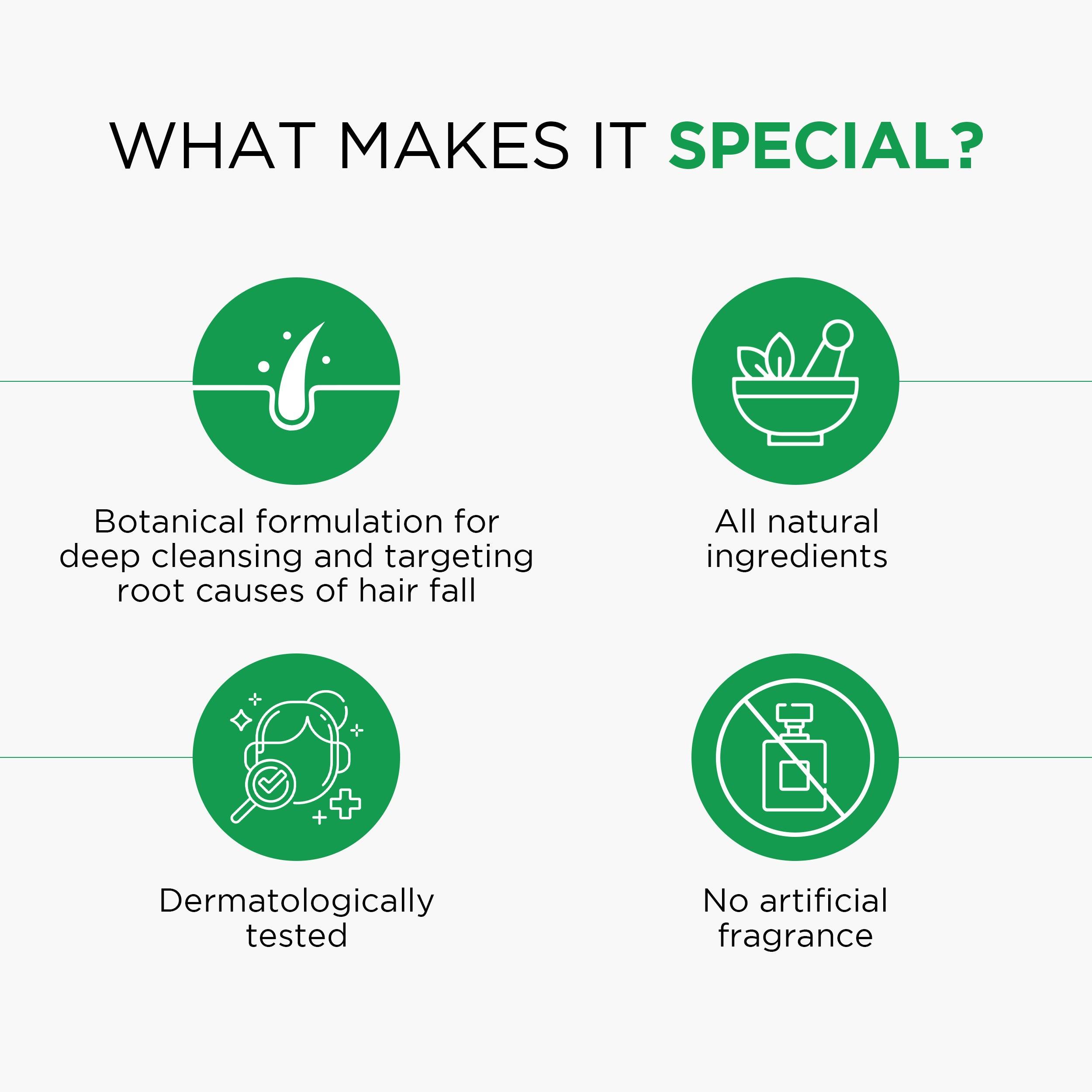 It nourishes roots with amla, reetha, and shikakai, strengthening hair from the scalp.