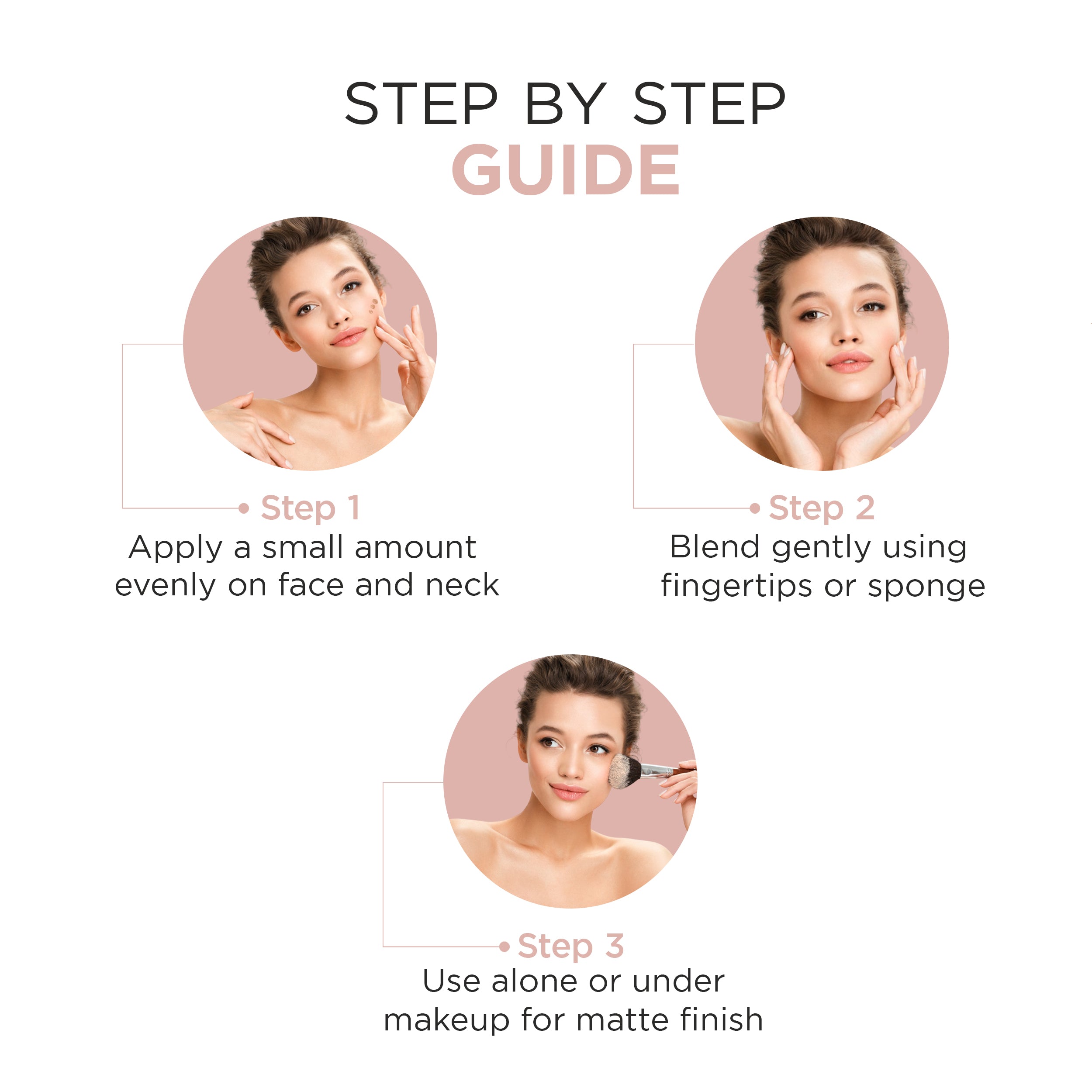 Take an appropriate amount of BB cream on your fingertips and apply it evenly to the face and neck and blend well.