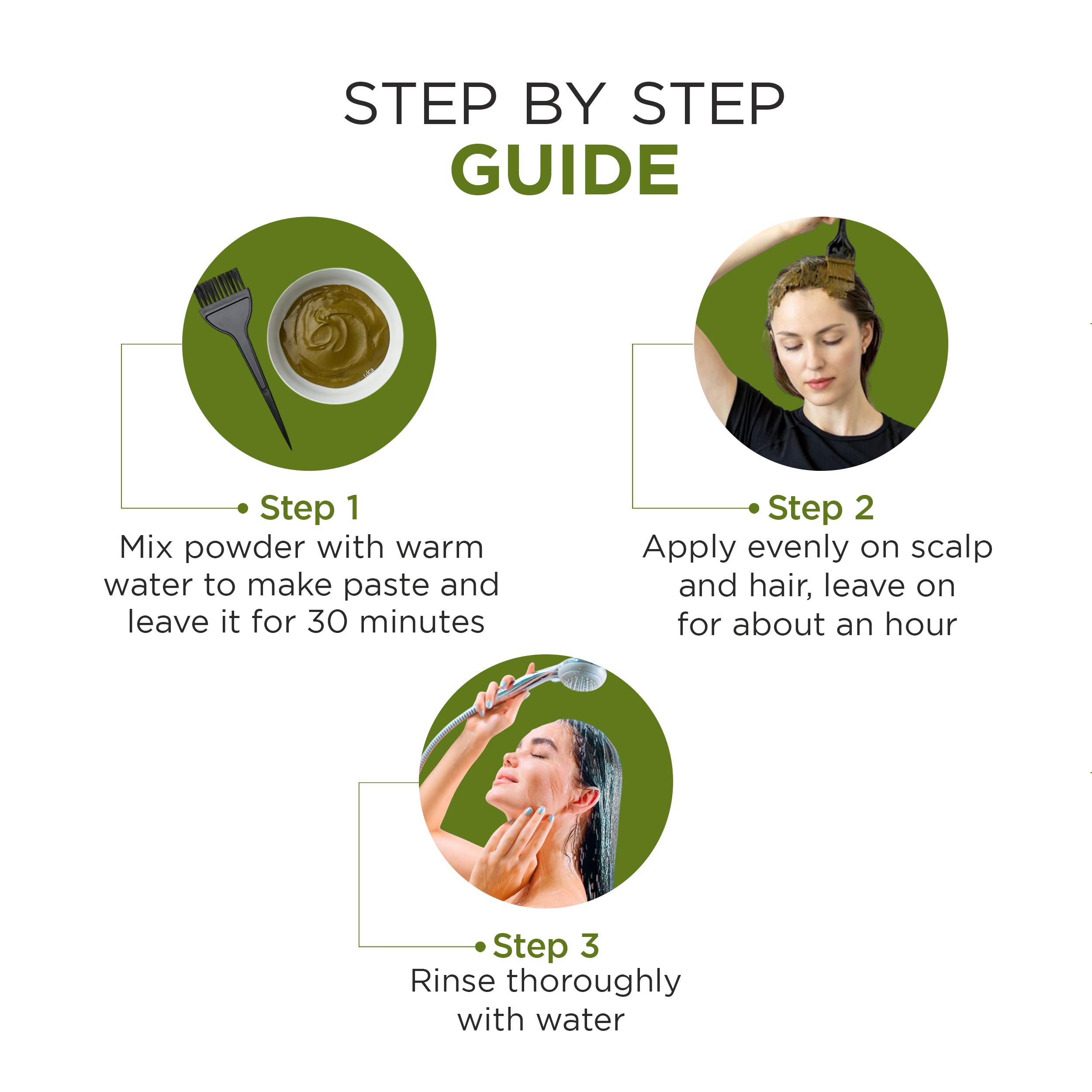 Mix required quantity of Heena Hair pack with luke warm water and make a paste and leave the paste for 30 minutes.