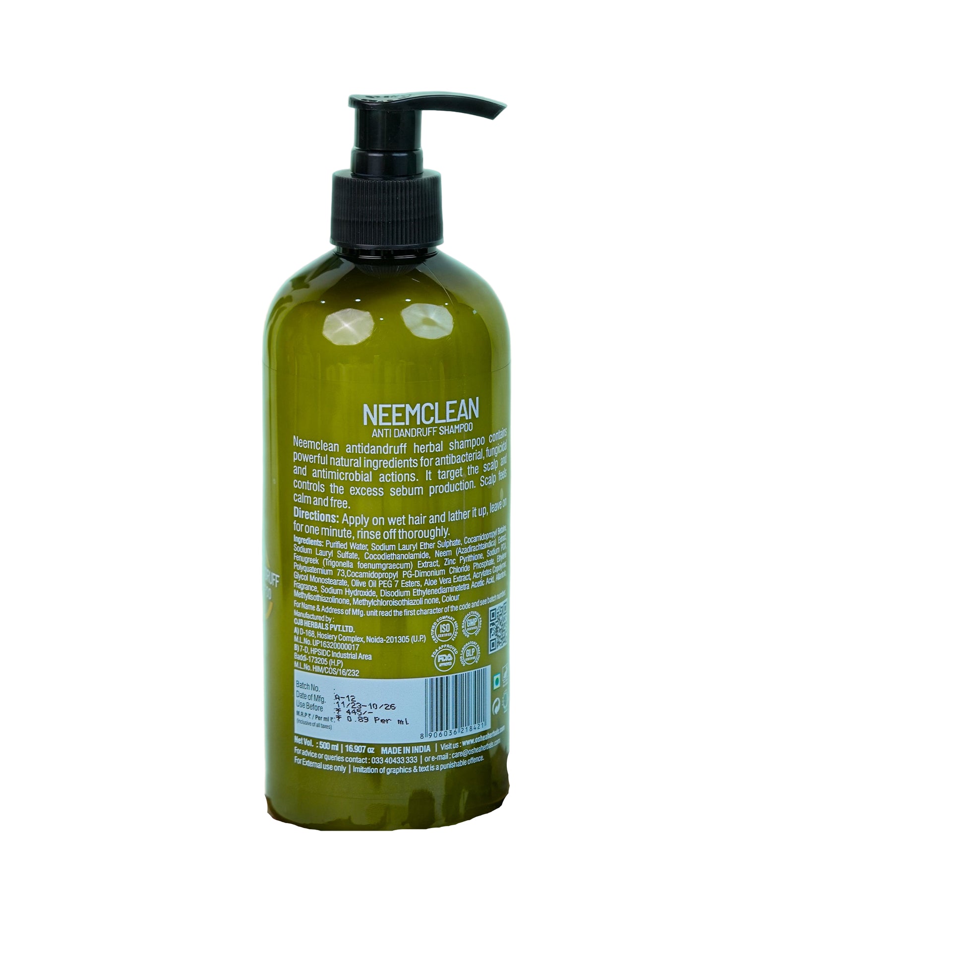 Neemclean Antidandruff Shampoo contains powerful natural ingredients for antibacterial, fungicidal, and antimicrobial actions. It is enriched with neem and fenugreek extracts. It targets the scalp and controls excess sebum production. Scalp feels calm and free. It is suitable for all hair types. It's paraben and silicon-free for natural, vibrant hair.