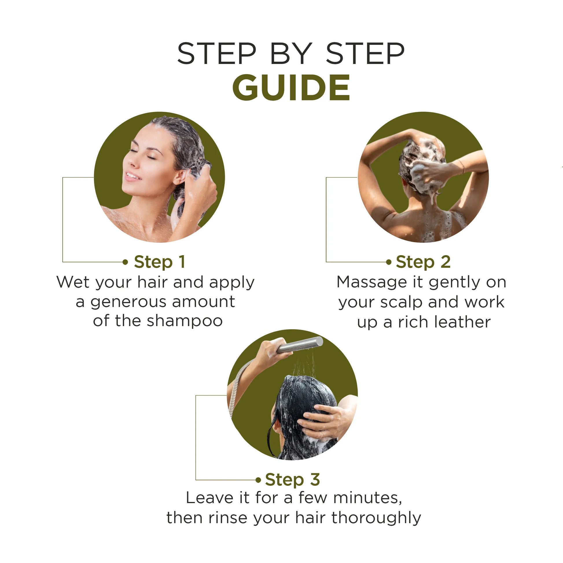 Apply a generous amount of shampoo to wet scalp & hair.