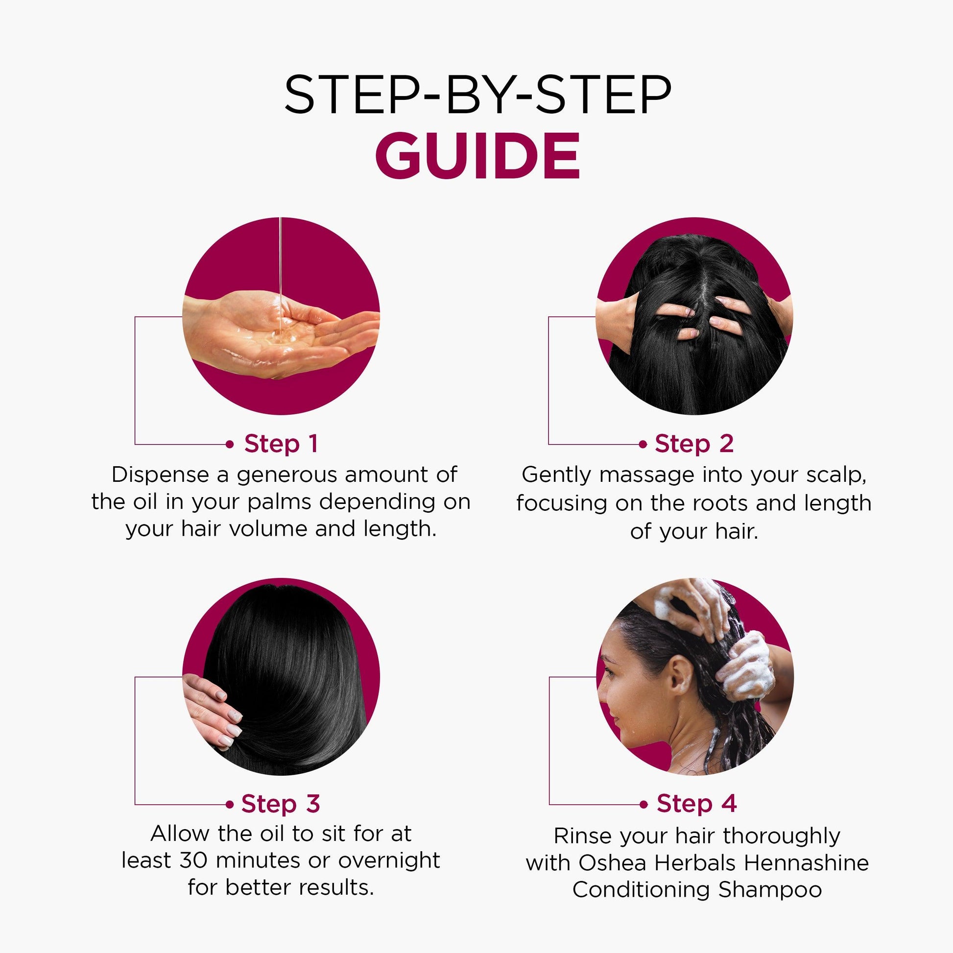 Gently massage into scalp thoroughly focusing on the roots, and the length of your hair.
