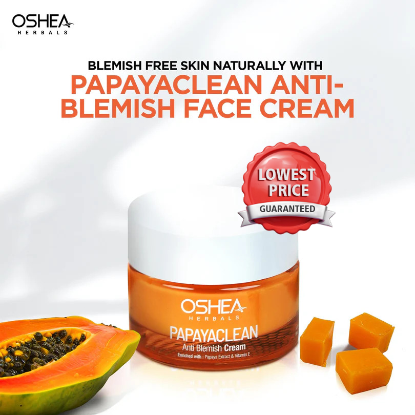 A2. Oshea Herbals PapayaClean Anti-Blemish Cream uses papaya extracts to gently fade blemishes and improve overall skin clarity.