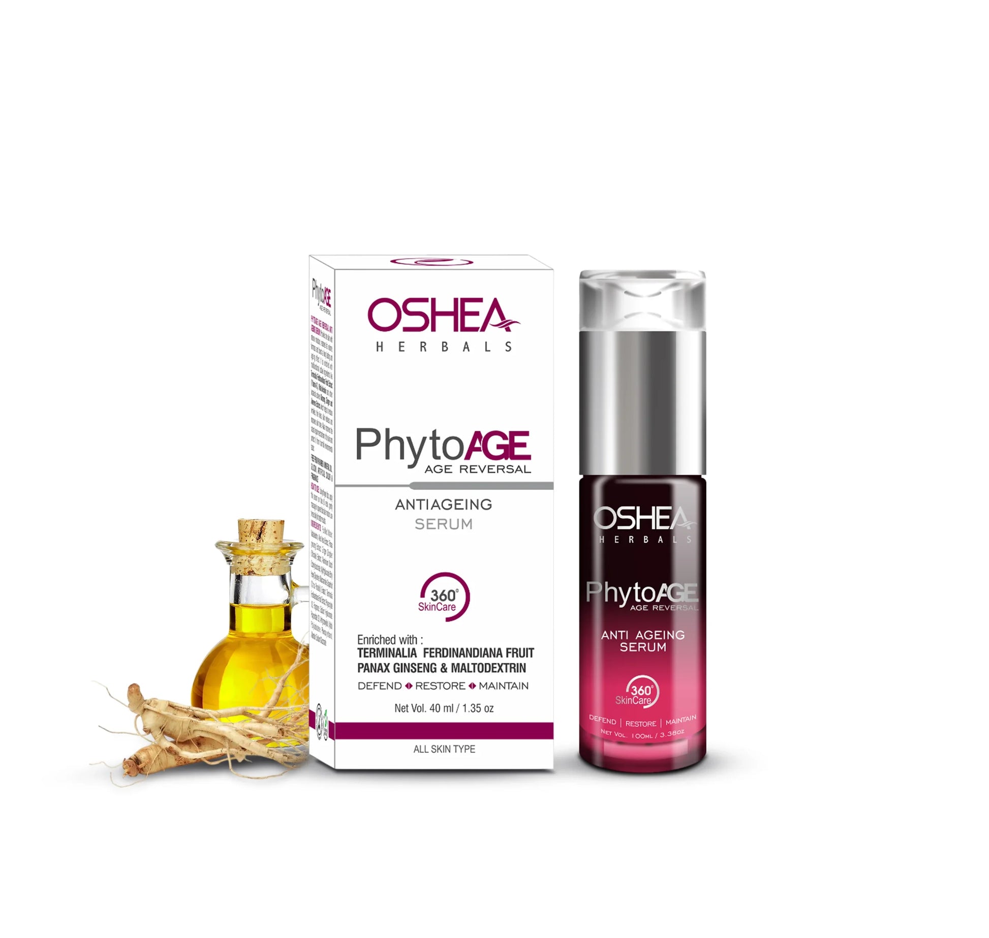 Phytoage Age Reversal Anti Ageing Serum provides the skin with intense moisture, restores its volume and firmness, and boosts long-lasting anti ageing effects. It is enriched with multifunctional active ingredients like Terminalia Ferdinandiana fruit extract ( vitamin C ) Maltodextrin and swertia chirata extract cyclo tetrapeptide and other botanical actives Ginseng, Ginger, Aloe vera Extract which helps to reduce wrinkles, fine lines, skin redness and improves skin tone. Also improves the natural repair mechanism of the skin and protect it from harmful environmental factor.