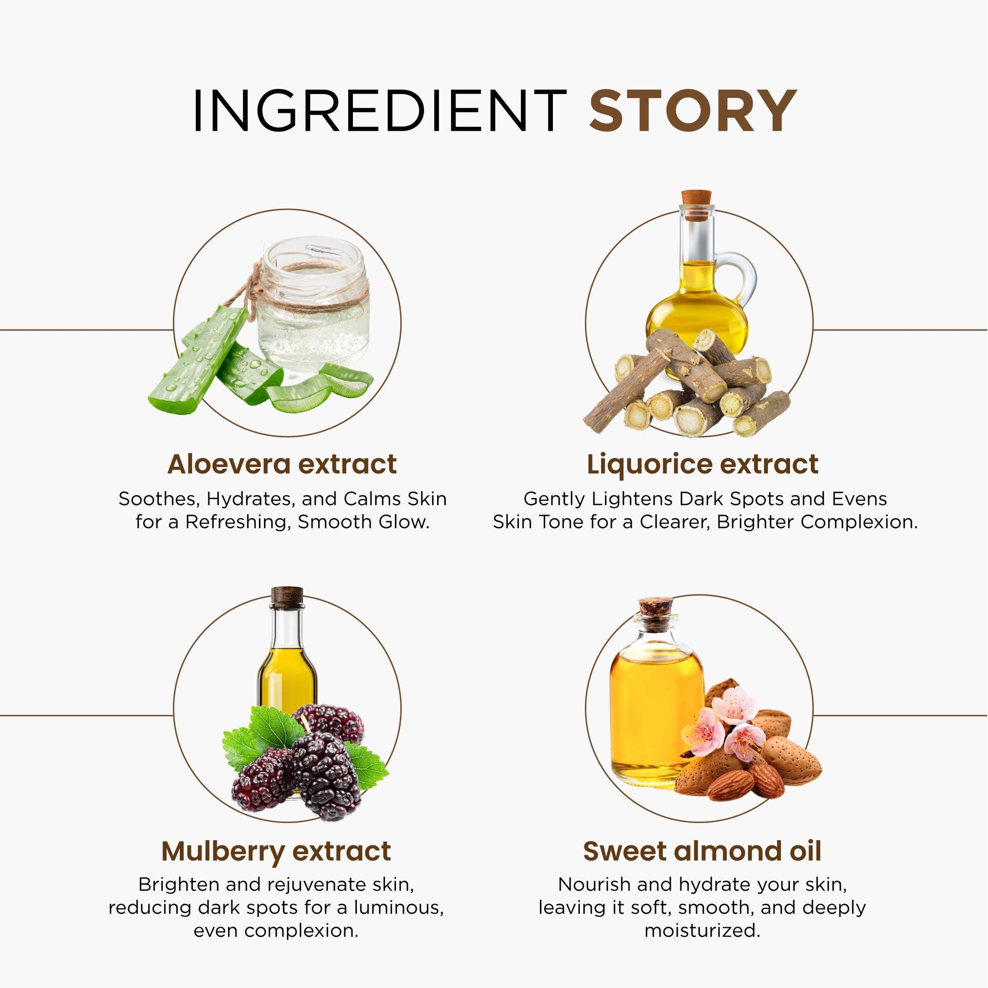 It exfoliates dead skin and lightens sun-induced pigmentation using natural brightening agents.